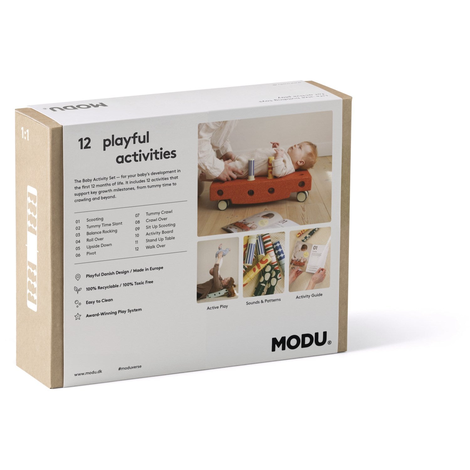 Mød MODU Baby Motoriksæt i farverne Burnt Orange / Dusty Green - det ultimative motoriske legetøj til dit barns udvikling! Designet af børneergoterapeuter, tilbyder dette sæt 12 motoriske aktiviteter skabt til at stimulere syn og hørelse. Udforsk forskellige lyde og mønstre, der vil hjælpe dit barn med at lære og udvikle sig gennem leg.