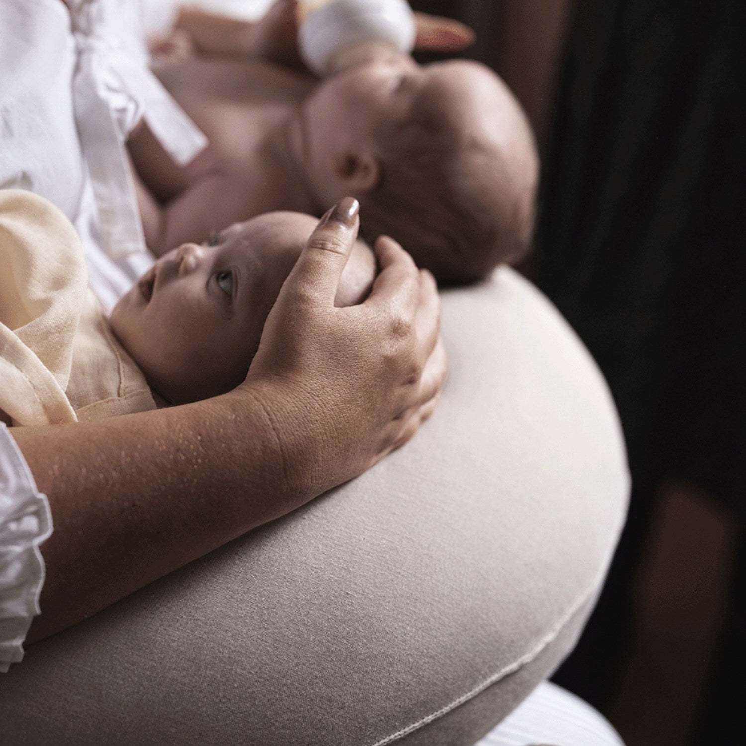 Opdag den multifunktionelle That's Mine Ammepude i smuk Feather Grey. Denne ammepude er designet med ekstra længde, så den kan bruges til både et enkelt barn eller tvillinger. Et praktisk bindebånd sikrer, at puden holdes på plads under amning. Udover at være en uundværlig ammehjælp, kan denne pude også anvendes som støtte til gravide, til at støtte sovende små børn eller til at hjælpe babyer med at styrke nakken under maveleje. De to charmerende blade, der er påsyet i enderne, fungerer også som søde nusseklude til barnet. Med 100% økologisk bomuld og fyld af Krøyerkugler, måler denne ammepude 77x72 cm og er en skøn og praktisk tilføjelse til enhver forældres arsenal.