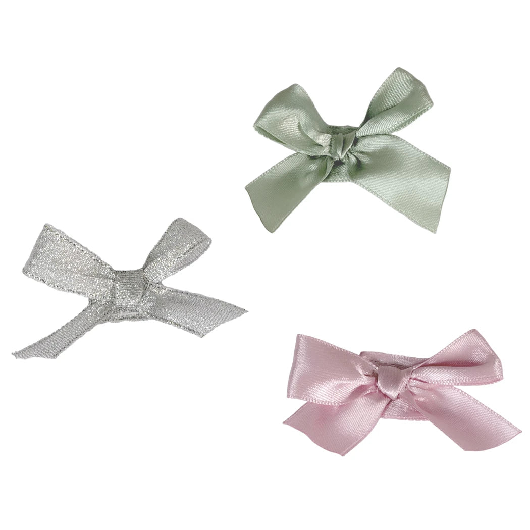 Der medfølger 3 forskellige sløjfer i farverne sølv, dusty rose og dusty green. Sløjferne er med VELCRO®, så de nemt kan sættes bag på ride hjelmen og udskiftes efter humør.