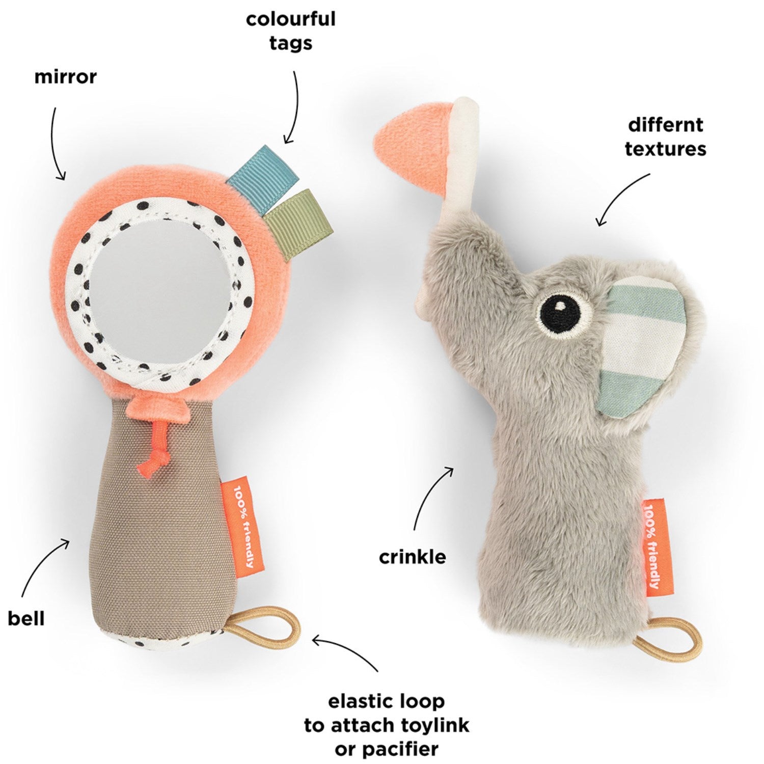 DonebyDeer Celebration Colour Mix Sanserangle med Spejl er det perfekte legetøj til at stimulere dit barns sanser på en sjov og interaktiv måde. Denne sanserangle er designet til at være let at gribe og holde for små hænder, hvilket gør den ideel for babyer og småbørn.