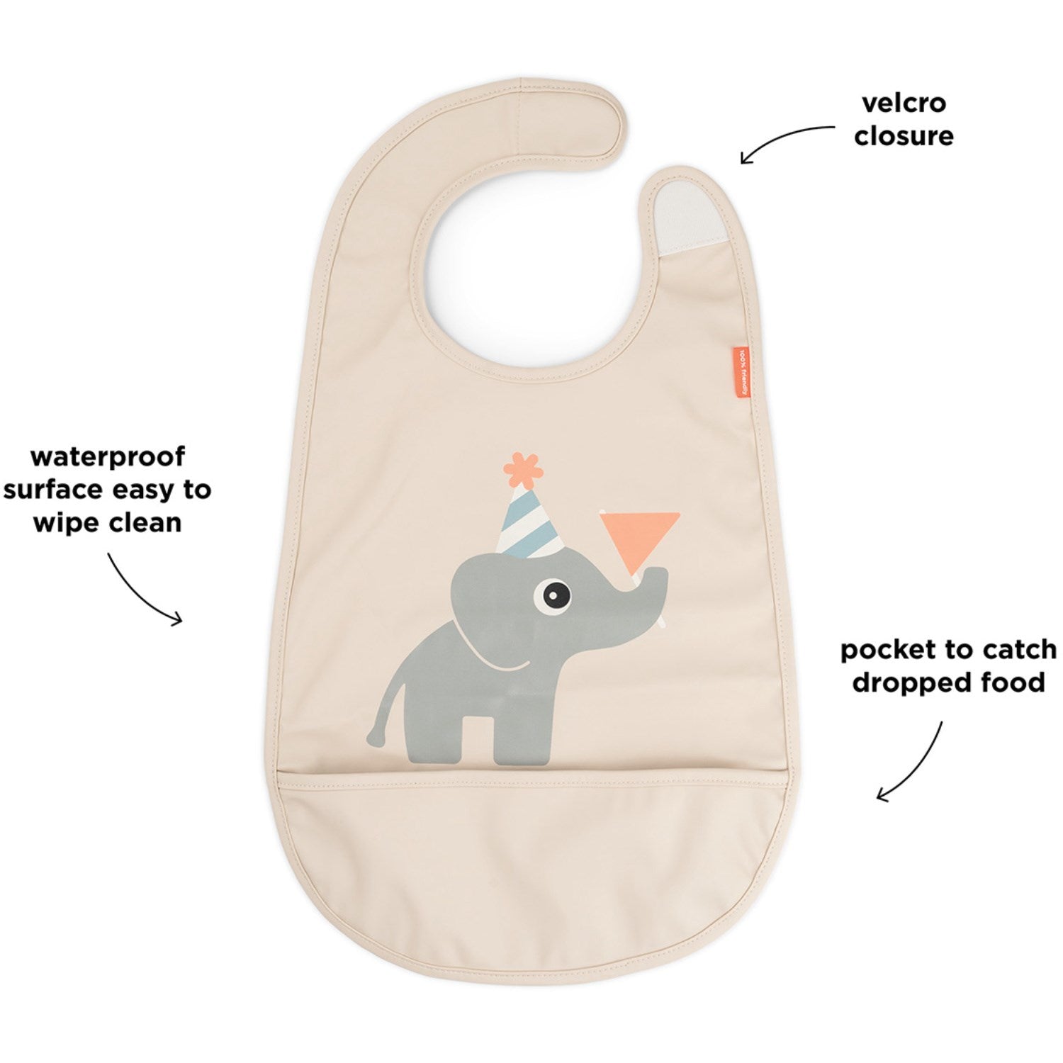 Fejr spisetid med stil med DonebyDeer Celebration Sand Hagesmæk Med Velcro. Denne hagesmæk har en vandtæt overflade, der nemt beskytter dit barns tøj og er let at rengøre. Den smarte indbyggede lomme fanger eventuelle madrester, hvilket reducerer rod og spild.