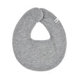 Rund hagesmæk med et vandafvisede lag indvendig. Hagesmækken lukkes med trykknap. Certificeret i hht. OCS Blended CERES-0366.
