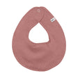 Rund hagesmæk med et vandafvisede lag indvendig. Hagesmækken lukkes med trykknap. Certificeret i hht. OCS Blended CERES-0366.