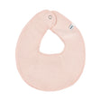 Rund hagesmæk med et vandafvisede lag indvendig. Hagesmækken lukkes med trykknap. Certificeret i hht. OCS Blended CERES-0366.