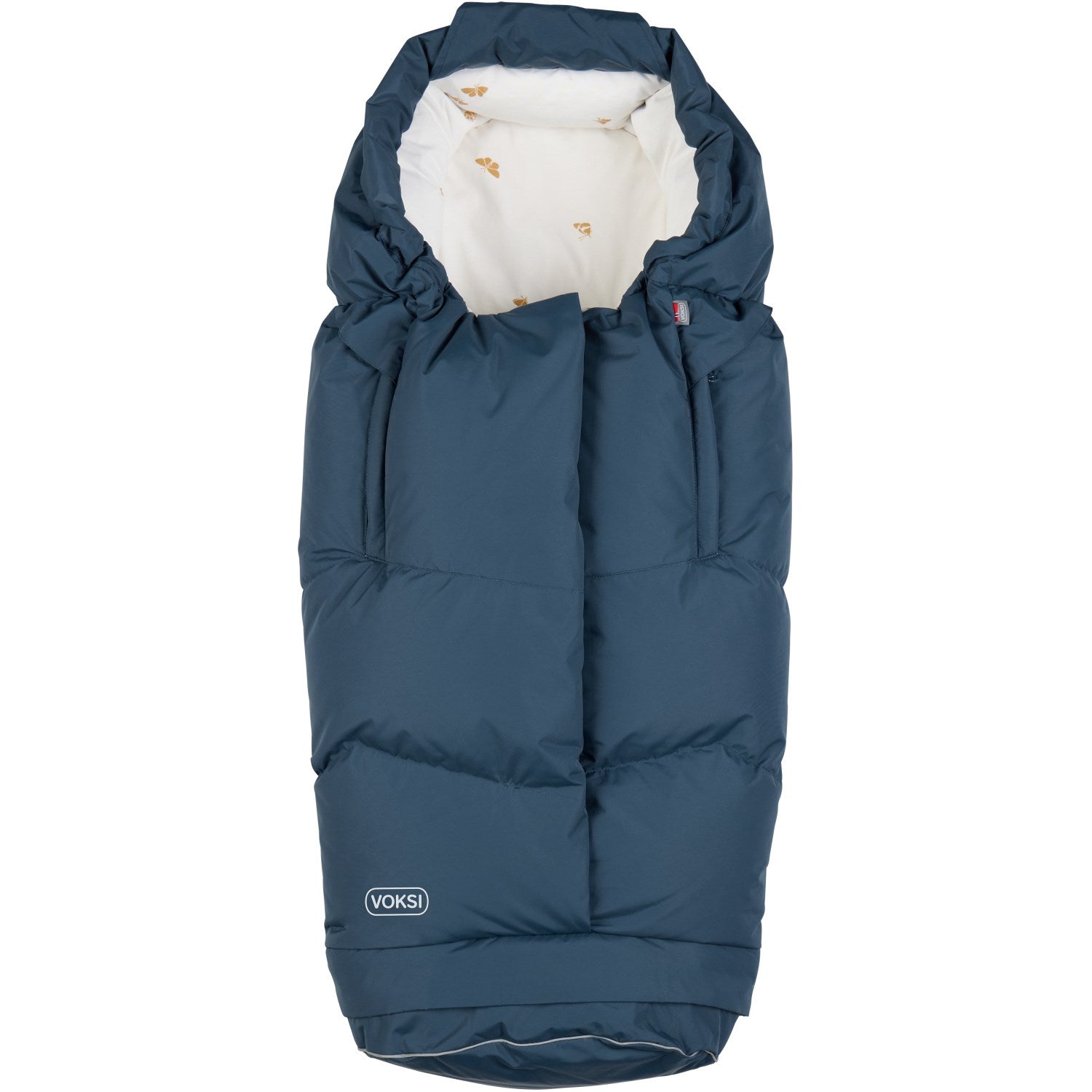 Voksi® Poppy Blue City North PoppyBlue wings køreposen er udstyret med skridsikkert materiale på ryggen for sikker fastgørelse i klapvognen. Overfladen er behandlet med BIONIC-FINISH® ECO, hvilket gør posen vandafvisende og modstandsdygtig mod snavs. Med en praktisk Velcro bagåbning passer den til de fleste vogne med 5-punktssele.