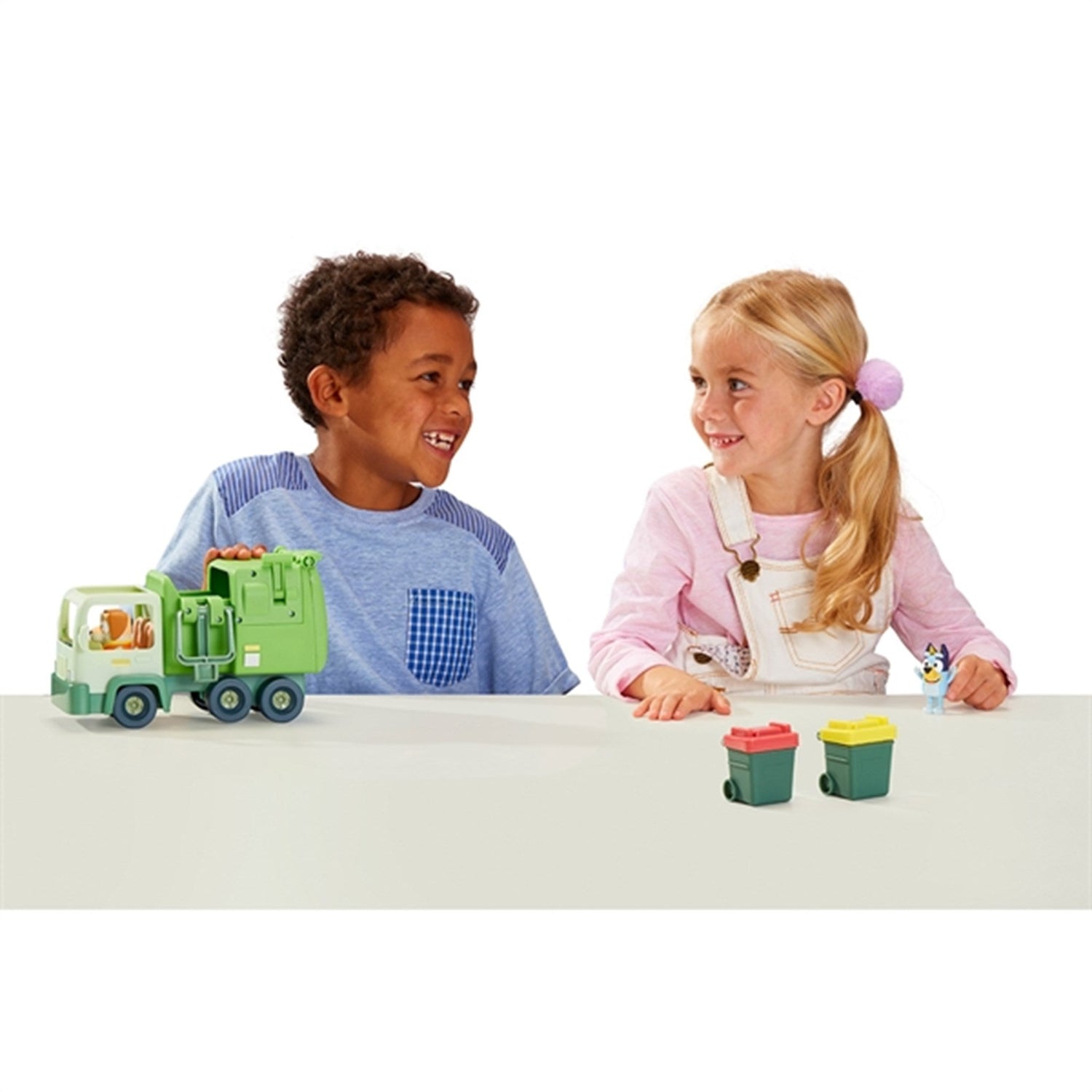 Kør på eventyr med Bluey Skraldebil og tag på spændende skraldemandsmissioner. Med to medfølgende figurer, Bluey og en skraldefigur, samt to skraldespande, kan I lære om affaldssortering på en sjov måde. Den realistiske skraldebil er perfekt til rolleleg, hvor I kan køre rundt og sørge for, at alt er rent og pænt.