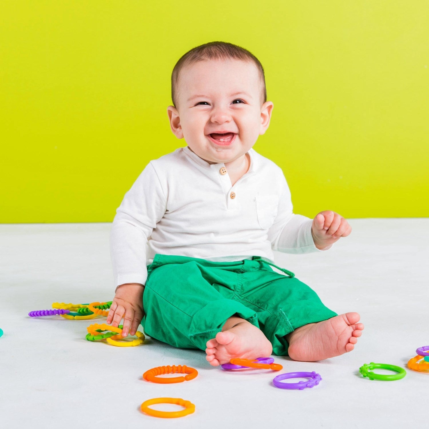 Opdag en verden af leg med Bright Starts Lots Of Links! Dette alsidige aktivitetslegetøj er designet til at styrke babyers motoriske færdigheder på en kreativ måde. Med 24 farverige led, der er fri for BPA, fremmer det koordination og indlæring, samtidig med at det sikrer en sikker leg. De lette at samle og adskille led kan bruges til at fastgøre yndlingslegetøj tæt på babyen eller som sjovt, håndgribeligt legetøj til at ryste og udforske.