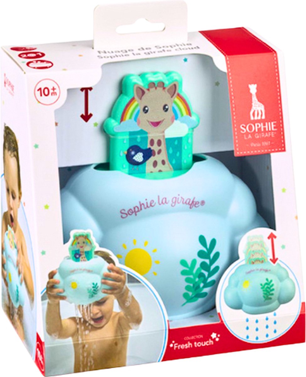 Når regnskyen sænkes ned i vandet, dukker Sophie frem og siger hej! Et sjovt og overraskende element, der vækker barnets nysgerrighed.