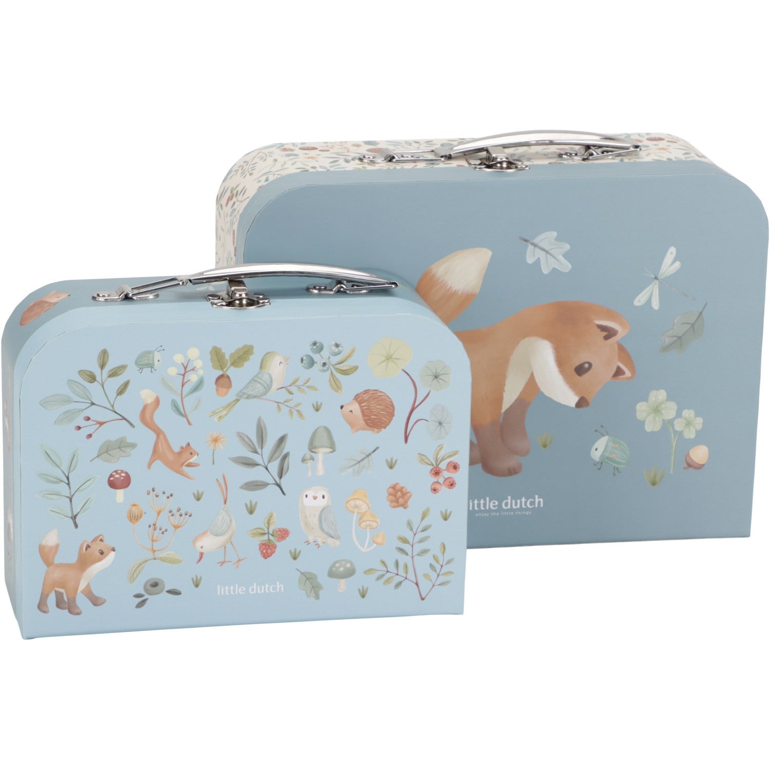 Mød Little Dutch Forest Friends Blue Kuffertsæt - det perfekte sæt til dit barns eventyr! Med to charmerende legekufferter dekoreret med søde illustrationer af en ræv, vil dette sæt helt sikkert fange dit barns fantasi og kreativitet. De børnevenlige metalhåndtag og lås gør kufferterne sikre og nemme for små hænder at håndtere.