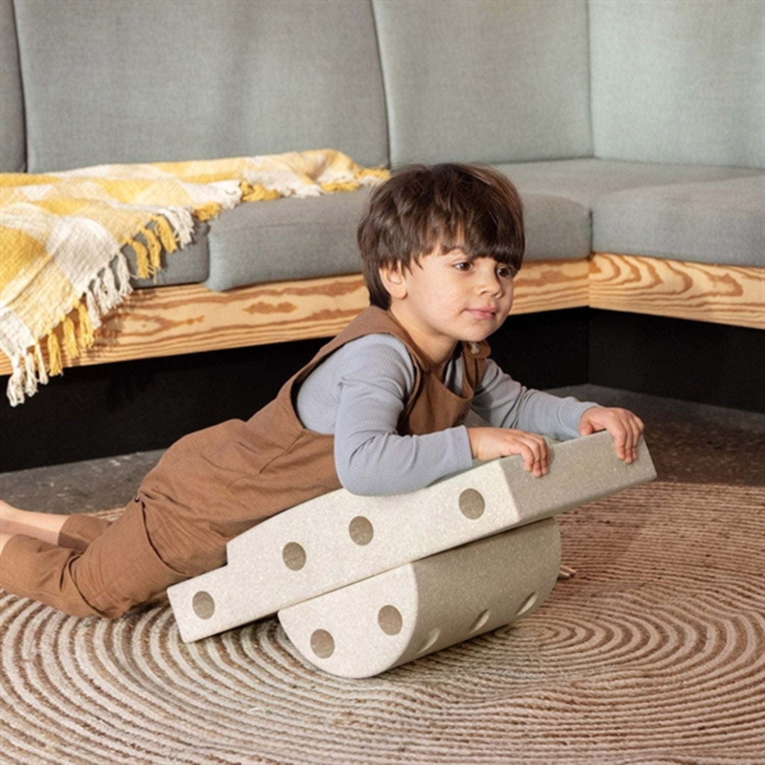Kit'et indeholder store skumklodser, pinde, hjul og en bog med byggeidéer. Det stimulerer aktiv leg og motorisk udvikling gennem barndommen og tilskynder børn til at bruge deres krop på forskellige måder - fra balancering til hoppen.