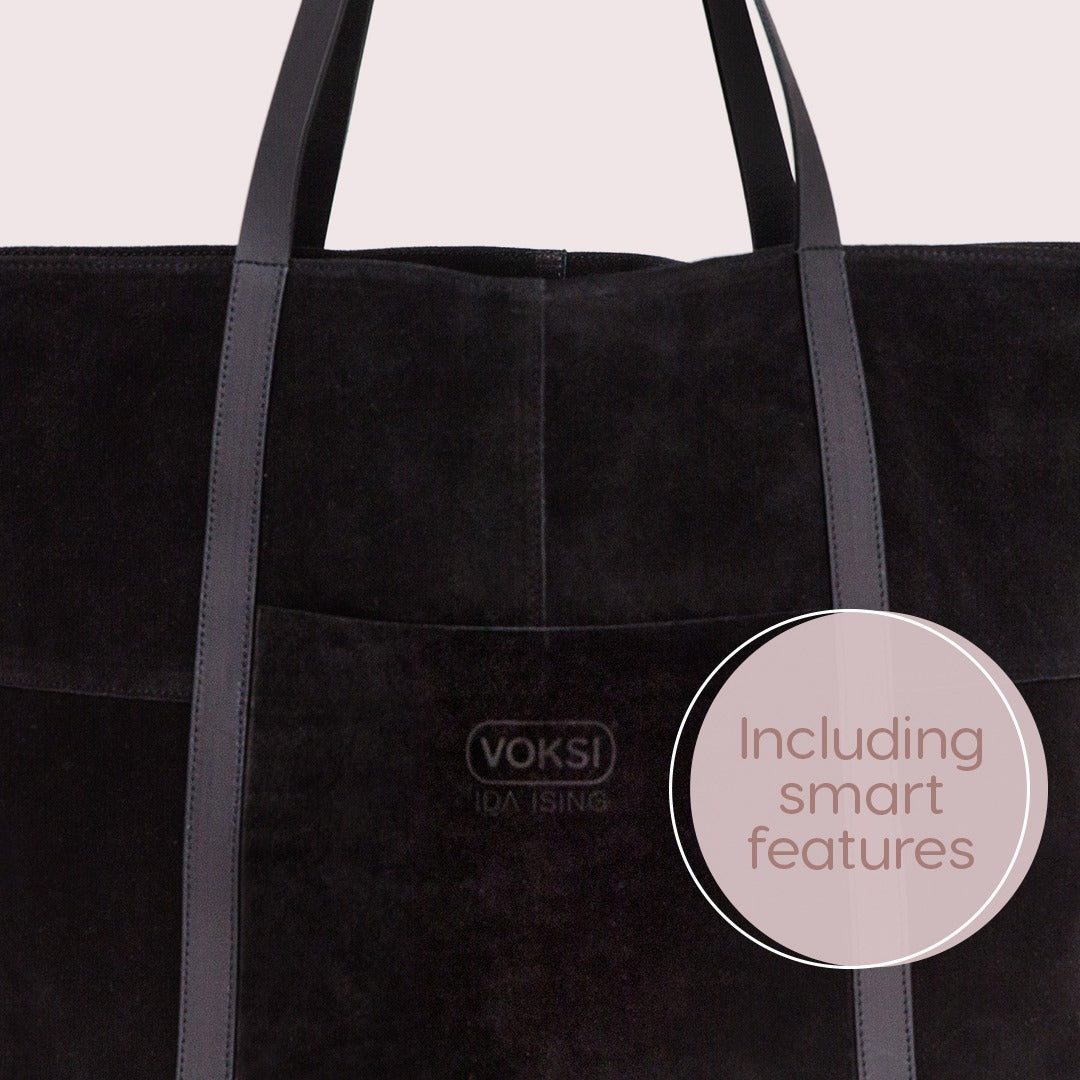 Pusletaske fra Voksi Ida Ising, i et elegant look, med masser af praktisk opbevaring til både forældre og baby.