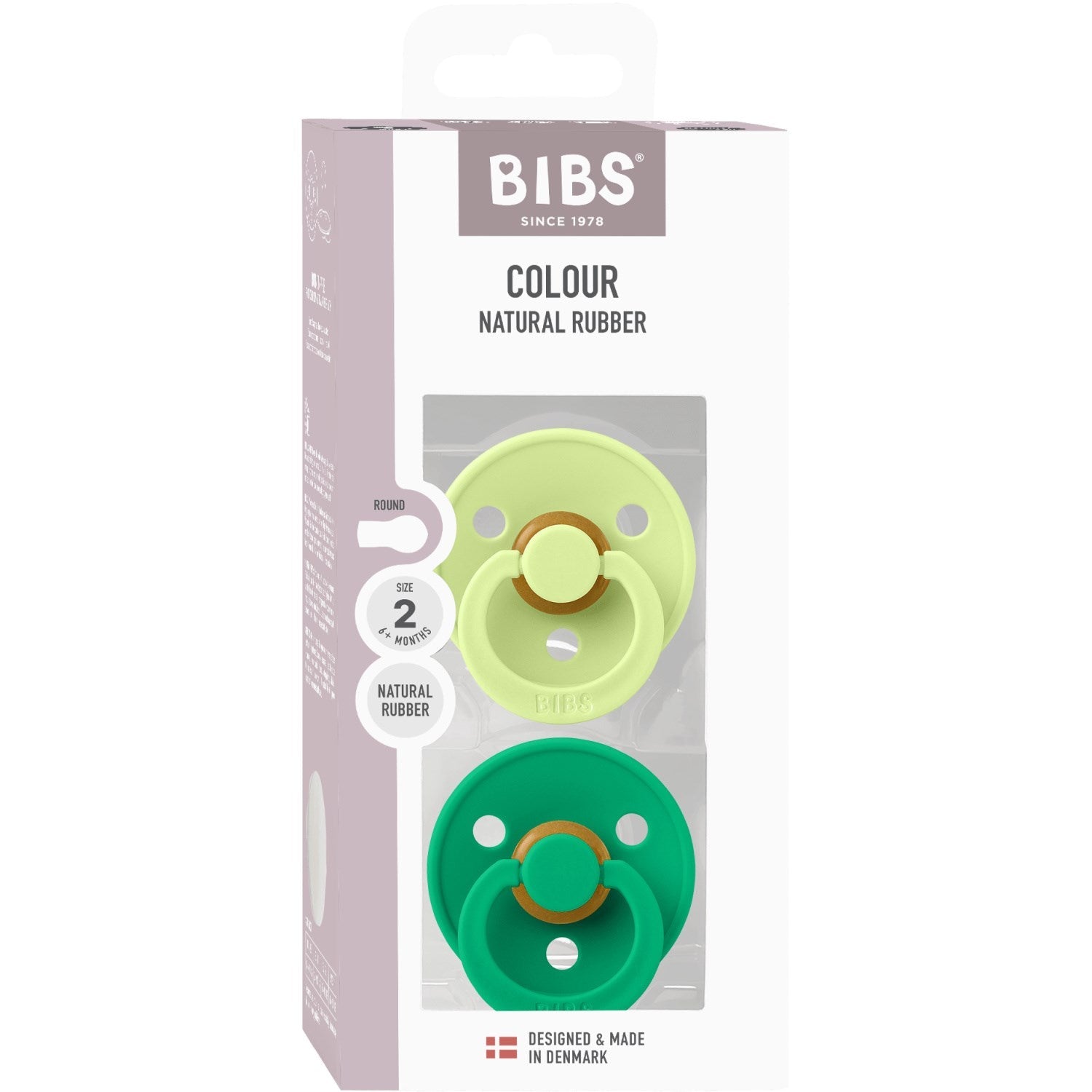 Opgrader dit barns komfort med BIBS Colour sutter i Matcha/Cactus farver. Disse sutter er designet til at imitere brystet og er ideelle til overgangen fra amning til flaskemadning. Lavet af blødt naturgummilatex, er de skånsomme og beroligende for dit barns sarte hud. Det unikke, runde skjold med ventilationshuller sikrer optimal luftcirkulation og forebygger hudirritation.