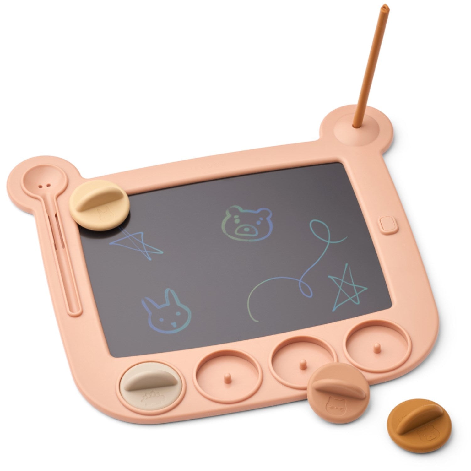 Opdag LIEWOOD Pale Tuscany Multi Mix Venzora Magic Tegnetavle W Stamps - det perfekte redskab til den lille kunstner. Dette bærbare, bjørneformede LCD-tegnebræt er designet til at fremme og udvikle barnets kreativitet med en medfølgende pen og fire sjove silikonestempler.