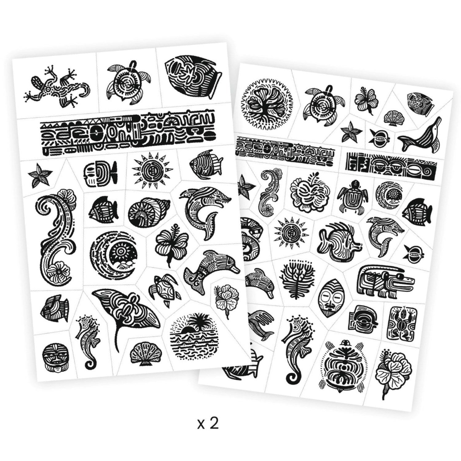 Opdag Djeco Tattoos Polynesien - et sjovt og kreativt tilbehør, der vil glæde alle børn! Med et stort udvalg af smukke og farverige tatoveringer, som spænder fra pirater til søde dyr, vil dit barn uden tvivl blive den sejeste i byen. Disse tatoveringer er ikke kun sjove at bruge til udklædningsfester og lege, de er også dermatologisk testet og sikre for børn at bruge. Så forældre kan slappe af og lade børnene nyde legen med disse skønne tatoveringer.