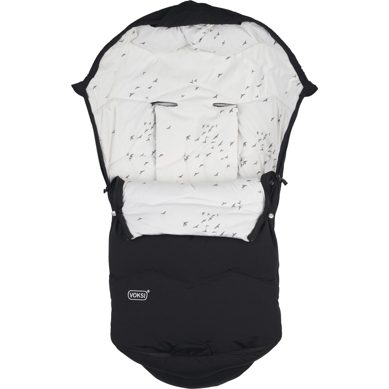 Voksi® Black Explorer Black Flying Kørepose er den ultimative løsning til sikker og behagelig søvn på farten for dit barn. Denne innovative kørepose er designet med fokus på komfort og sikkerhed og er foret med en blanding af ande- og dunfyld, der giver let varme og åndbarhed. Uldpolstringen hjælper med at opretholde en stabil temperatur under forskellige vejrforhold.