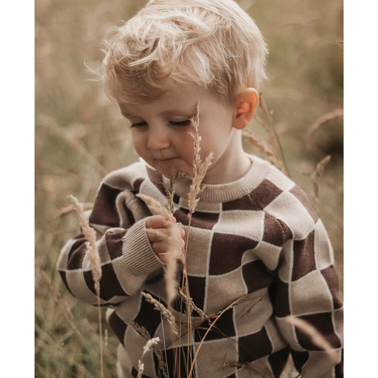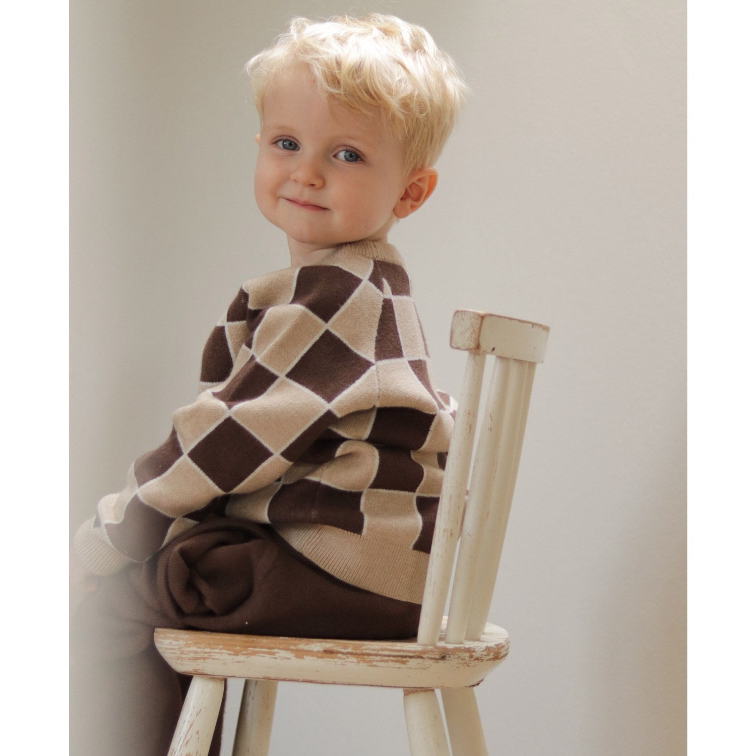 Vores Fliink Humus Check Alon Check pullover er skabt i blød strik, perfekt til børns sarte hud. Denne behagelige trøje har et iøjnefaldende ternet mønster, der tilføjer stil til enhver børnegarderobe. Tilgængelig i alsidige størrelser og designet til daglig brug, er denne pullover let at vedligeholde – et praktisk valg for travle forældre.
