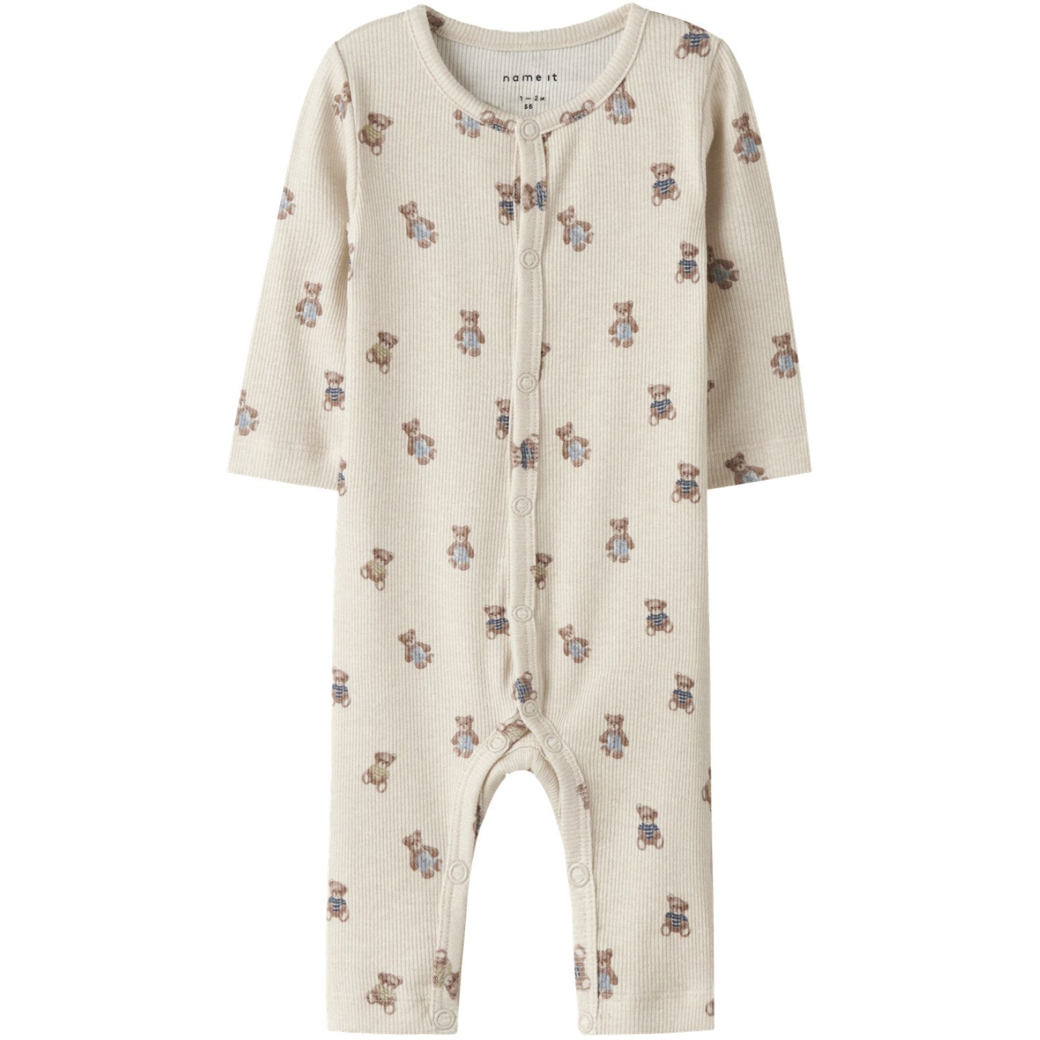 Dit barn fortjener kun det bedste, og med Name It Peyote Melange Nbmdenkab Ls Onesie får du både komfort og stil i ét. Den bløde ribstrik og de lodrette striber giver dragten et tidløst touch, mens elastikken sikrer en perfekt pasform. Med praktiske trykknapper på fronten og i skridtet er påklædning en leg. Det legende mønster over det hele tilføjer et sjovt twist til looket.