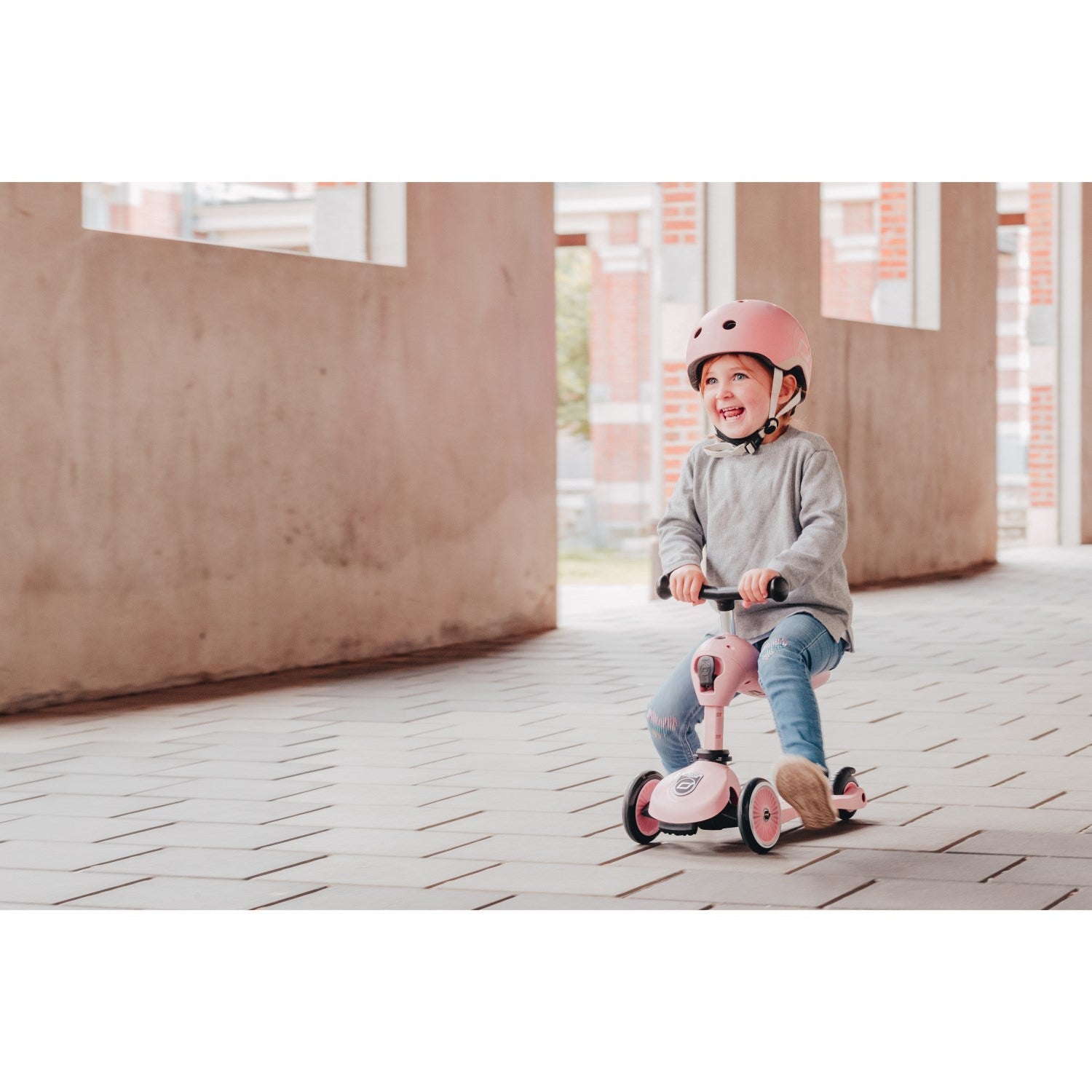 Oplev en innovativ løsning med Scoot and Ride Highway Kick 1 Rose, der kombinerer løbecykelens stabilitet med løbehjulets sjov. Denne smarte løbecykel kan nemt transformeres til et løbehjul, når dit barn er klar til nye udfordringer – uden brug af værktøj.